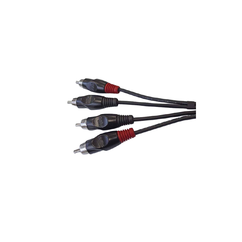 - Conectores RCA estéreo (rojo y blanco) en ambos extremos